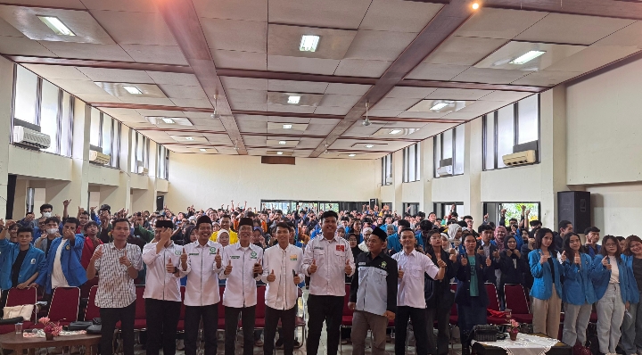 Diskusi dipandu oleh Gangga Listiawan, Bendahara Nasional BEM PTNU, dan menghadirkan tiga pembicara lintas organisasi mahasiswa.