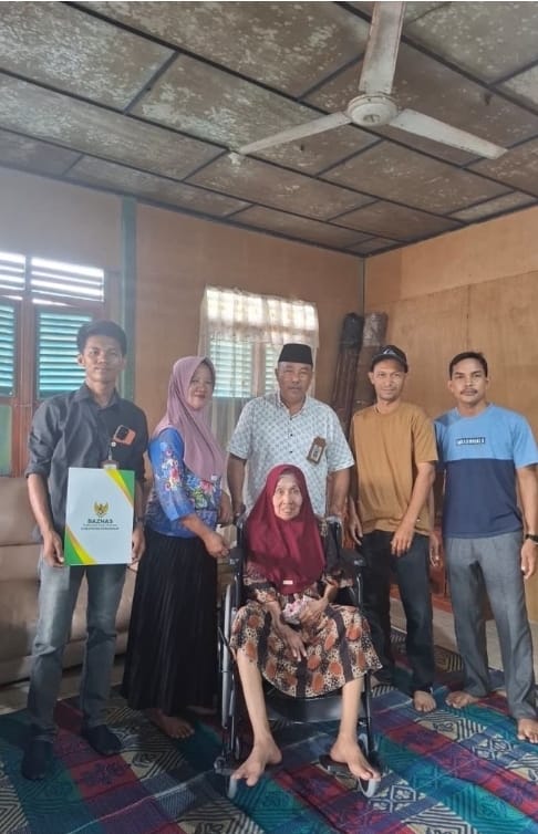 Bukit Batu – Bengkalis — Badan Amil Zakat Nasional (BAZNAS) Kabupaten Bengkalis kembali menyalurkan bantuan pada bidang kemanusiaan berupa alat bantu kesehatan berupa kursi roda kepada Yasin, warga RT 004/RW 002 Desa Bukit Batu, Kecamatan Bukit Batu, Minggu (21/12/2025).