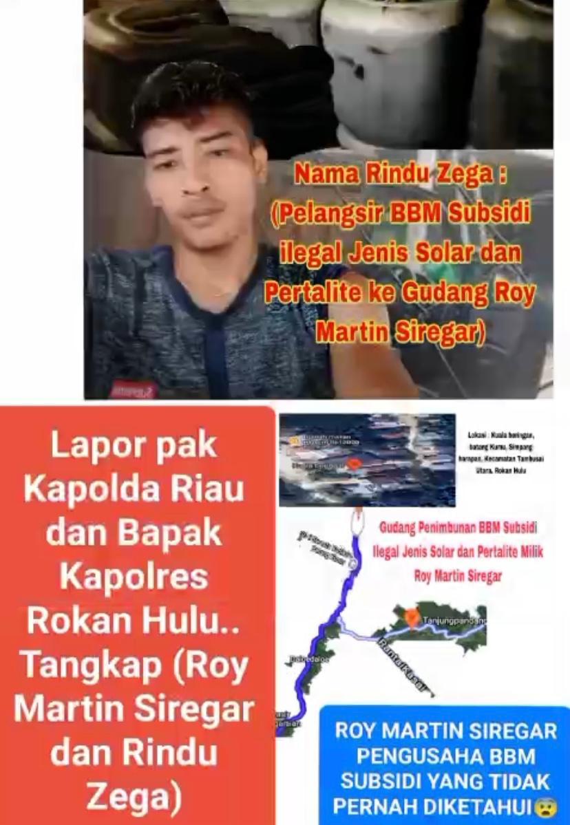 Informasi yang dihimpun awak media dari berbagai sumber masyarakat menyebutkan, seorang warga bernama Roy Martin Siregar diduga kuat menjalankan bisnis penimbunan BBM subsidi jenis solar dan pertalite secara ilegal. Aktivitas tersebut diduga tidak berjalan sendiri, melainkan dibantu oleh seorang pria bernama Rindu Zega.