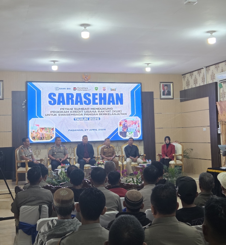 Program tersebut dikemas dalam kegiatan Sarasehan Pemberian KUR Bank BRI kepada Petani Jagung Binaan Polri dalam rangka Mendukung Swasembada Pangan, yang digelar di Aula Polres Pasaman, Senin (27/4/2026).