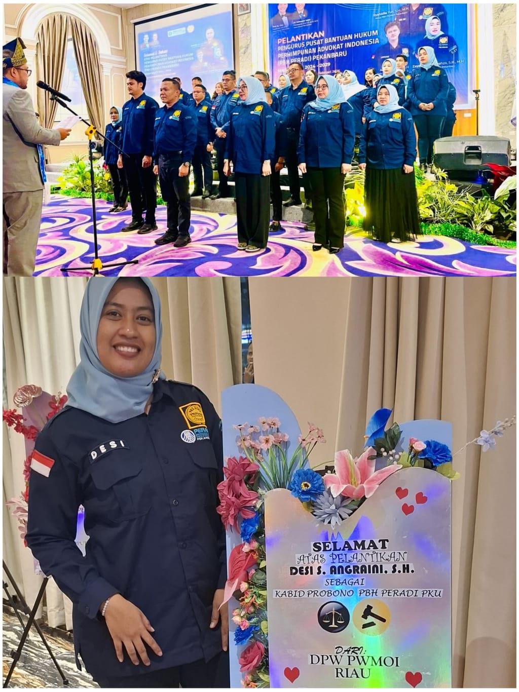 Ditempat terpisah, melalui sambungan telpon, Ketua Dewan Pimpinan Wilayah (DPW) Perkumpulan Wartawan Media Online Indonesia (PWMOI) Provinsi Riau melalui Humasnya menyampaikan selamat dan sukses kepada saudari Desi Silvia Anggraini, S.H selaku anggota di Bidang Hukum dan Advokasi DPW PWMOI Riau atas pelantikannya sebagai Kabid Pengelolaan Pro bono PBH PERADI Pekanbaru, masa bakti 2024-2029.