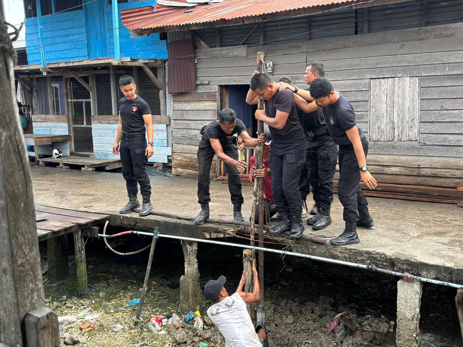 Brimob Polda Riau dan Polres Rohil Gotong Royong di Panipahan, Wujud Nyata Kepedulian Polri