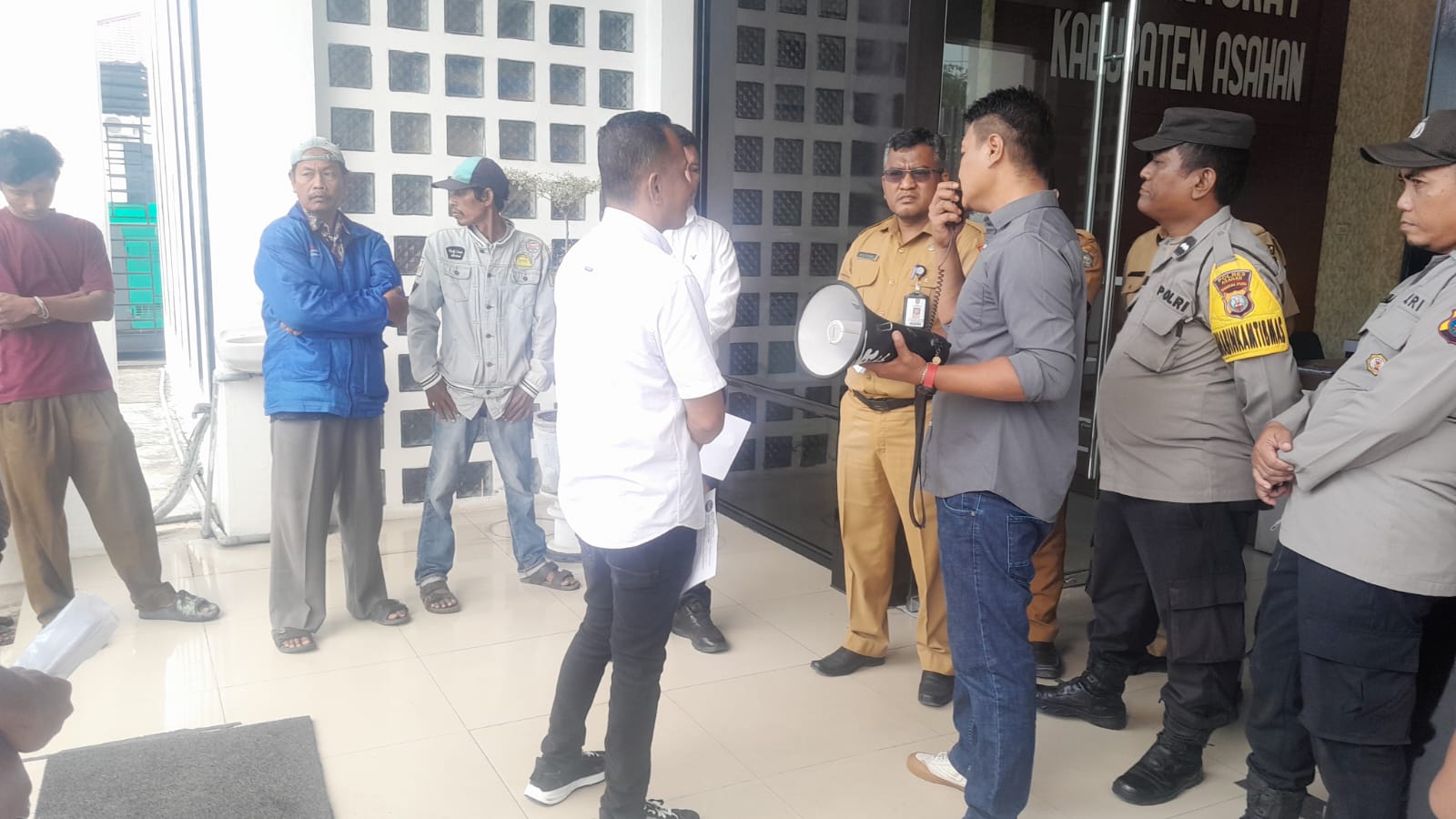 Masih dalam suasana tuntutan Aksi Unjuk Rasa didepan Pintu gerbang kantor Kejaksaan Negeri Kisaran – Asahan, Satriawan meminta agar Kajari Asahan dapat hadir dihadapan mereka dan berdialog dengan mereka, namun bertepatan Kajari tidak berada ditempat para pengunjuk rasa di sambut oleh Kasi Intel Kejari Asahan Heriyanto Manurung, SH perwakilan Kajari. Selanjutnya, dalam sambutan Kasi Intelkam Kejari Asahan kepada sekelompok pengunjuk rasa DPP. LPSP.