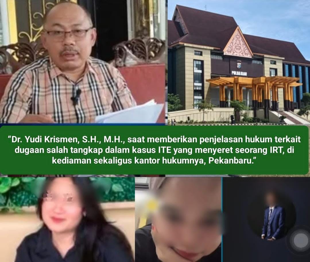 Pekanbaru – Penanganan perkara dugaan pelanggaran ITE yang menjerat seorang ibu rumah tangga, M, kini memasuki titik paling krusial. Setelah rekaman, dokumen internal, dan rangkaian pemeriksaan memperlihatkan kejanggalan demi kejanggalan, kini analisis akademis–yuridis dari Dr. Yudi Krismen, S.H., M.H., memperlihatkan secara terang struktur kekeliruan penyidikan yang dilakukan di lingkungan Ditreskrimsus Polda Riau. Kombinasi temuan lapangan dan analisis itu memperkuat dugaan bahwa M adalah korban salah tangkap, salah prosedur, dan salah penerapan hukum.