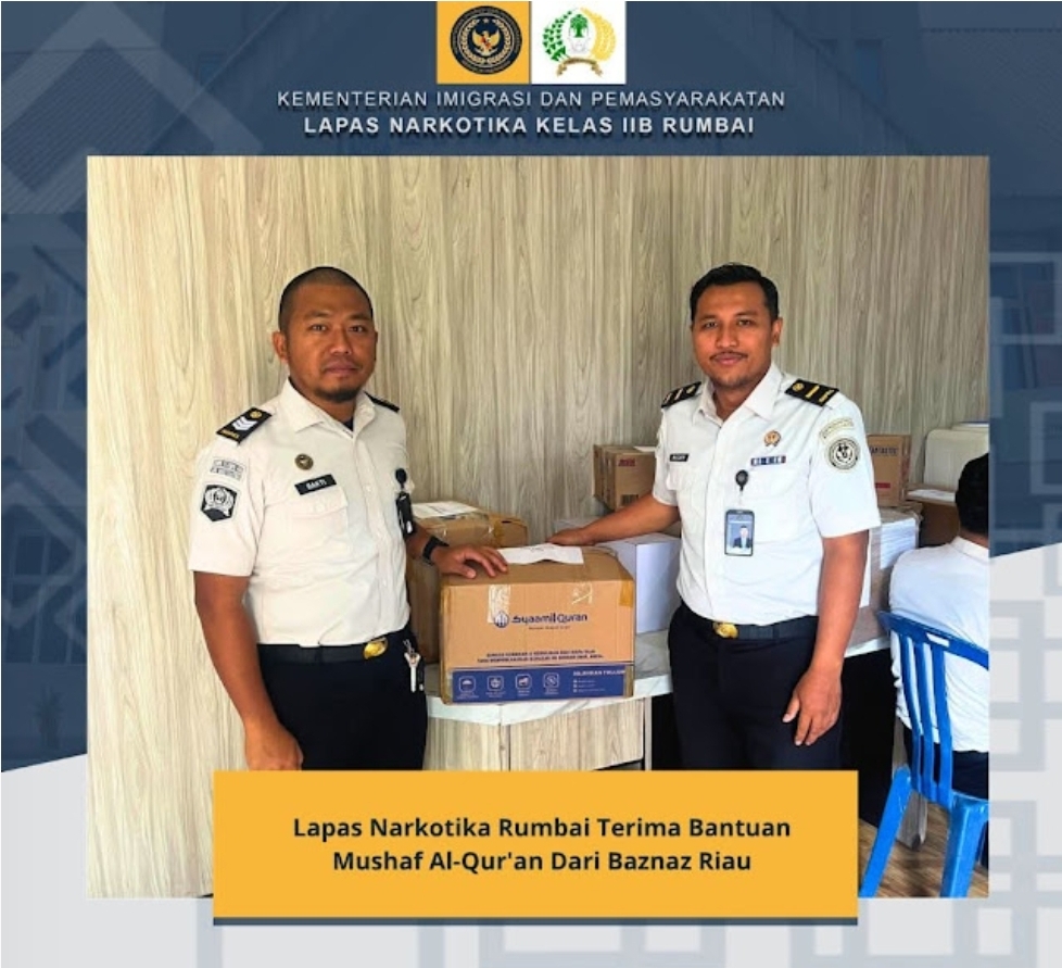 Kepala Lapas (Kalapas) Narkotika Rumbai, Reinhards Indra Pitoy, mengungkapkan mushaf Al-Qur’an tersebut nantinya dipergunakan untuk peningkatan pembinaan kerohanian Warga Binaan Pemasyarakatan (WBP) Muslim di Lapas Narkotika Rumbai untuk meningkatkan amal ibadah mereka selama menjalani masa pidana di Lapas.