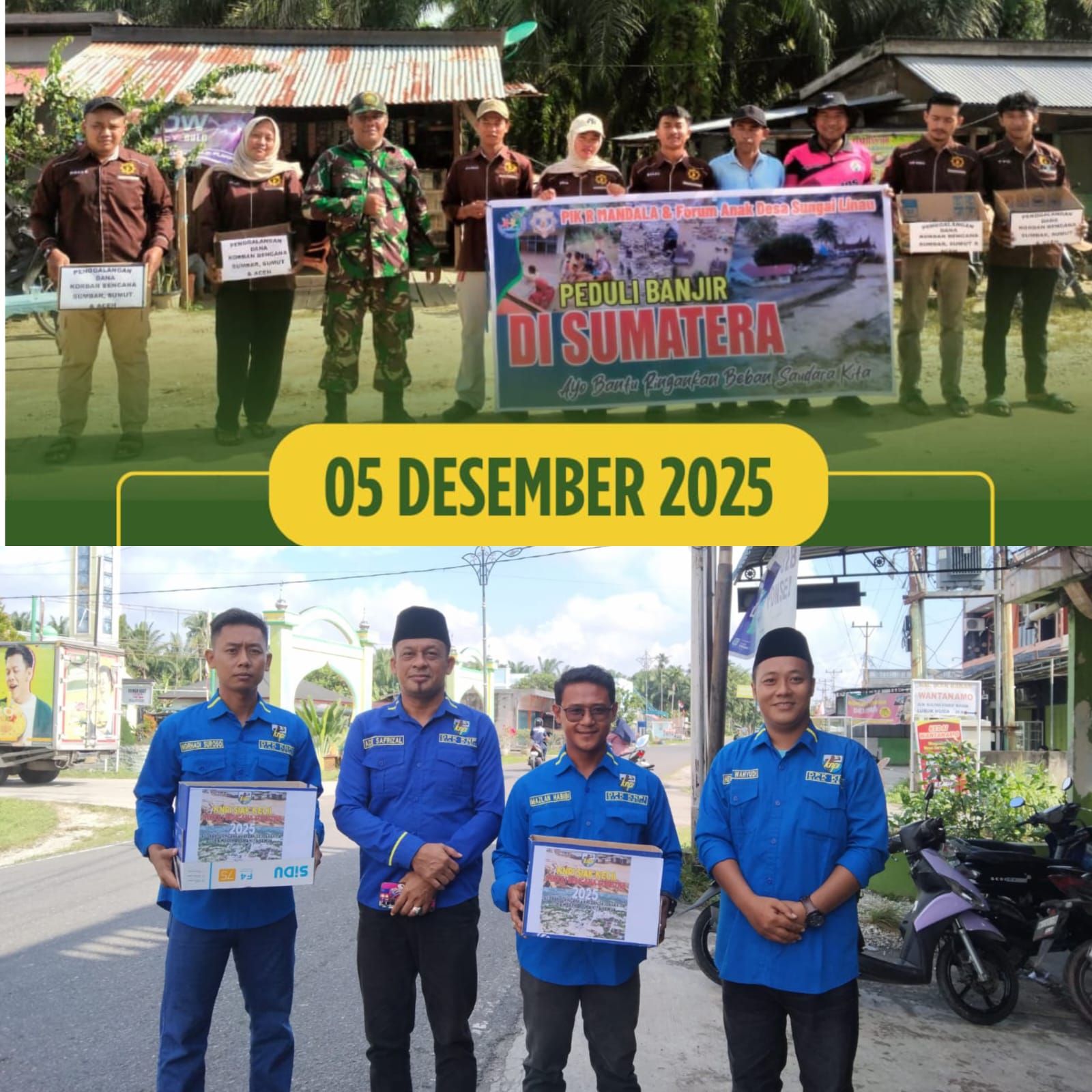 Sungai Linau – Bengkalis – Bertempat di Desa Sungai Linau, Kabupaten Bengkalis, Riau, Pj. Kades Desa Sungai Linau beserta staf, Bhabinsa, Bhabinkamtibmas dan KNPI Bengkalis, menggelar pengumpulan Donasi untuk korban bencana alam yang ada di di beberapa wilayah, khususnya di Provinsi Sumatera Barat. Jumat (5/12/2025).