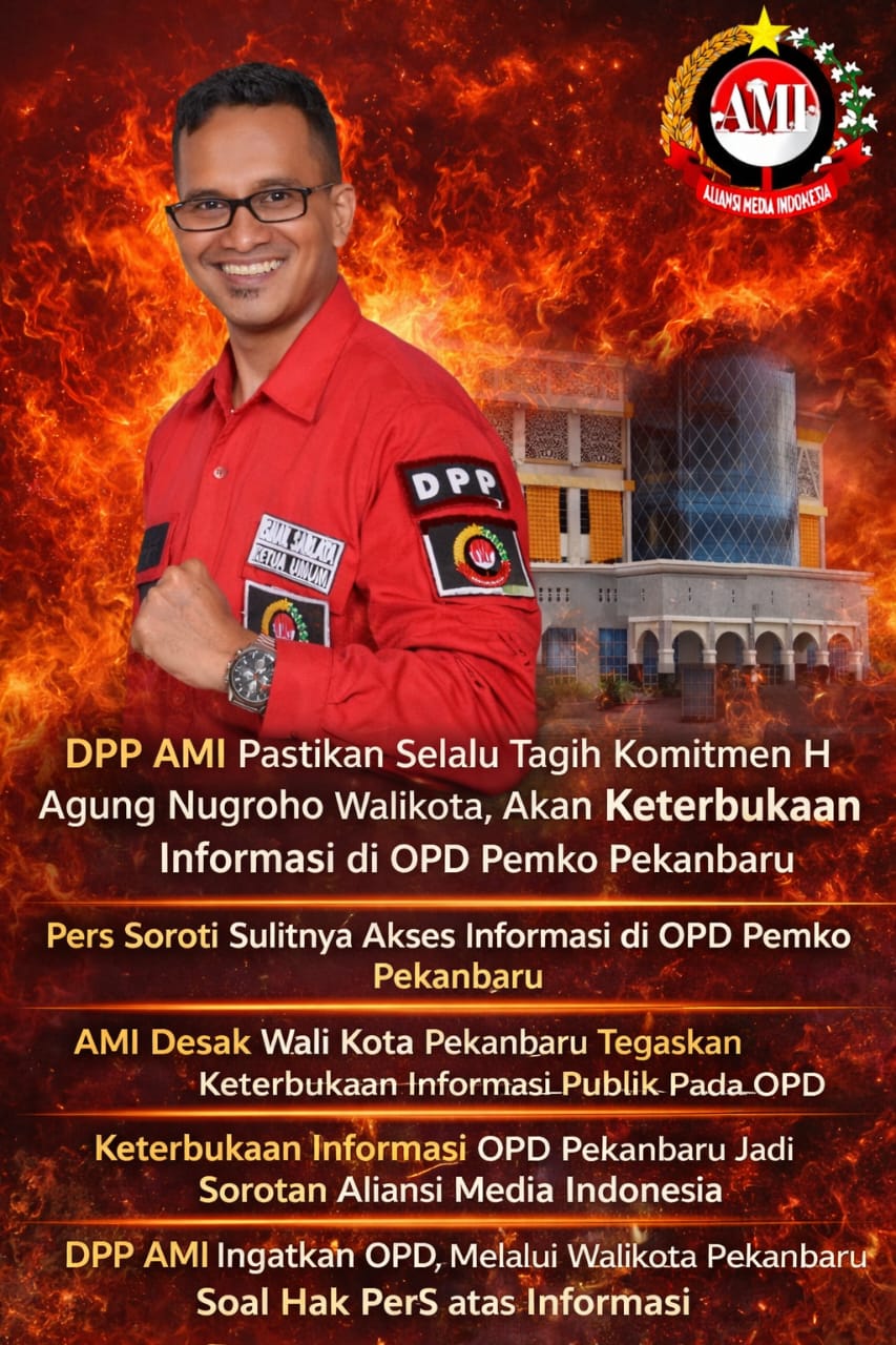 Oleh karena itu, DPP AMI berharap H Agung Nugroho Wali Kota Pekanbaru dapat memperkuat komitmen keterbukaan informasi di seluruh OPD agar hubungan antara pemerintah, pers, dan masyarakat dapat berjalan secara sehat dan konstruktif.