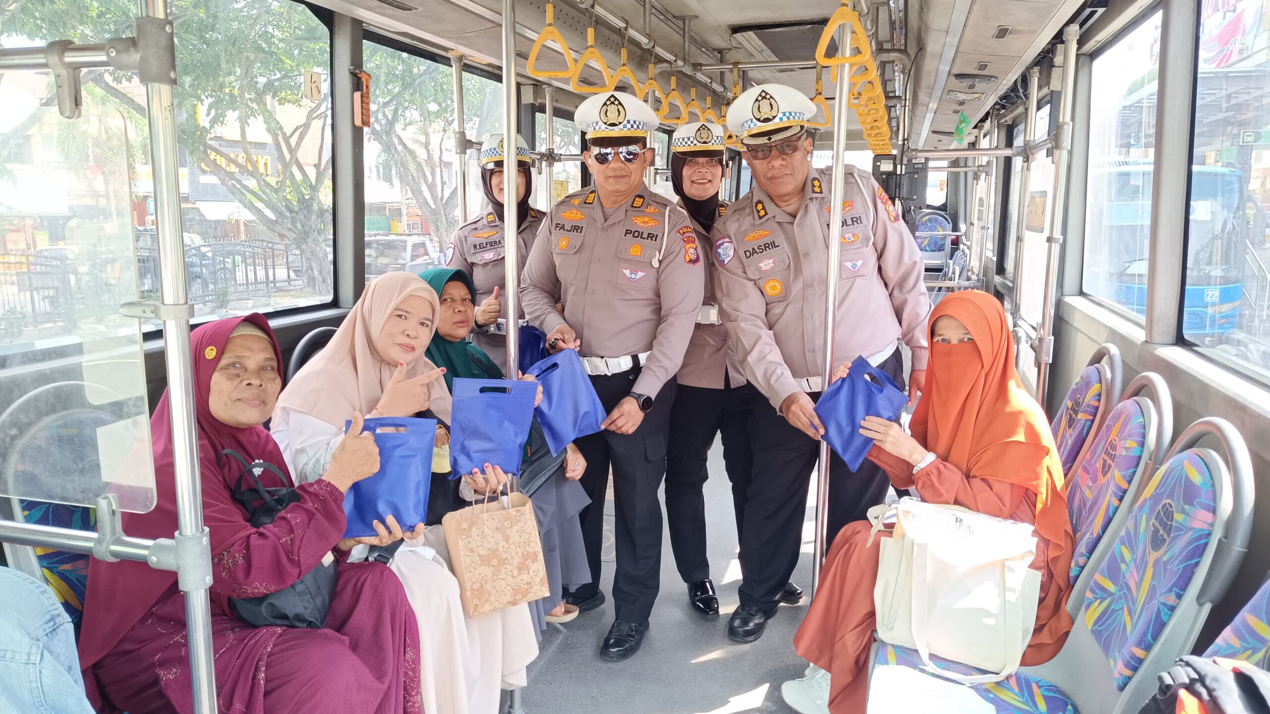 Polantas Menyapa dan Green Policing, Ditlantas Polda Riau Sapa Penumpang Busway di Sukaramai Trade Center