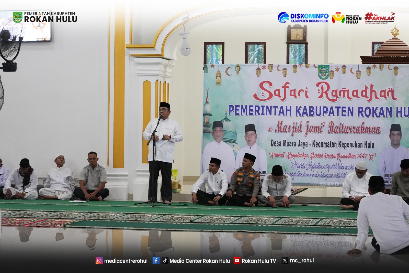 Rohul – Guratan bahagia terpancar jelas di wajah warga Desa Muara Jaya, Kecamatan Kepenuhan Hulu, pada Rabu sore (4/3/2026). Masjid Baiturrahman yang menjadi kebanggaan desa tampak lebih hidup dari biasanya. Bukan sekadar rutinitas ibadah, kehadiran jajaran Pemerintah Kabupaten Rokan Hulu (Rohul) dalam agenda Safari Ramadan 1447 H ke-5 membawa angin segar bagi harapan-harapan warga setempat.