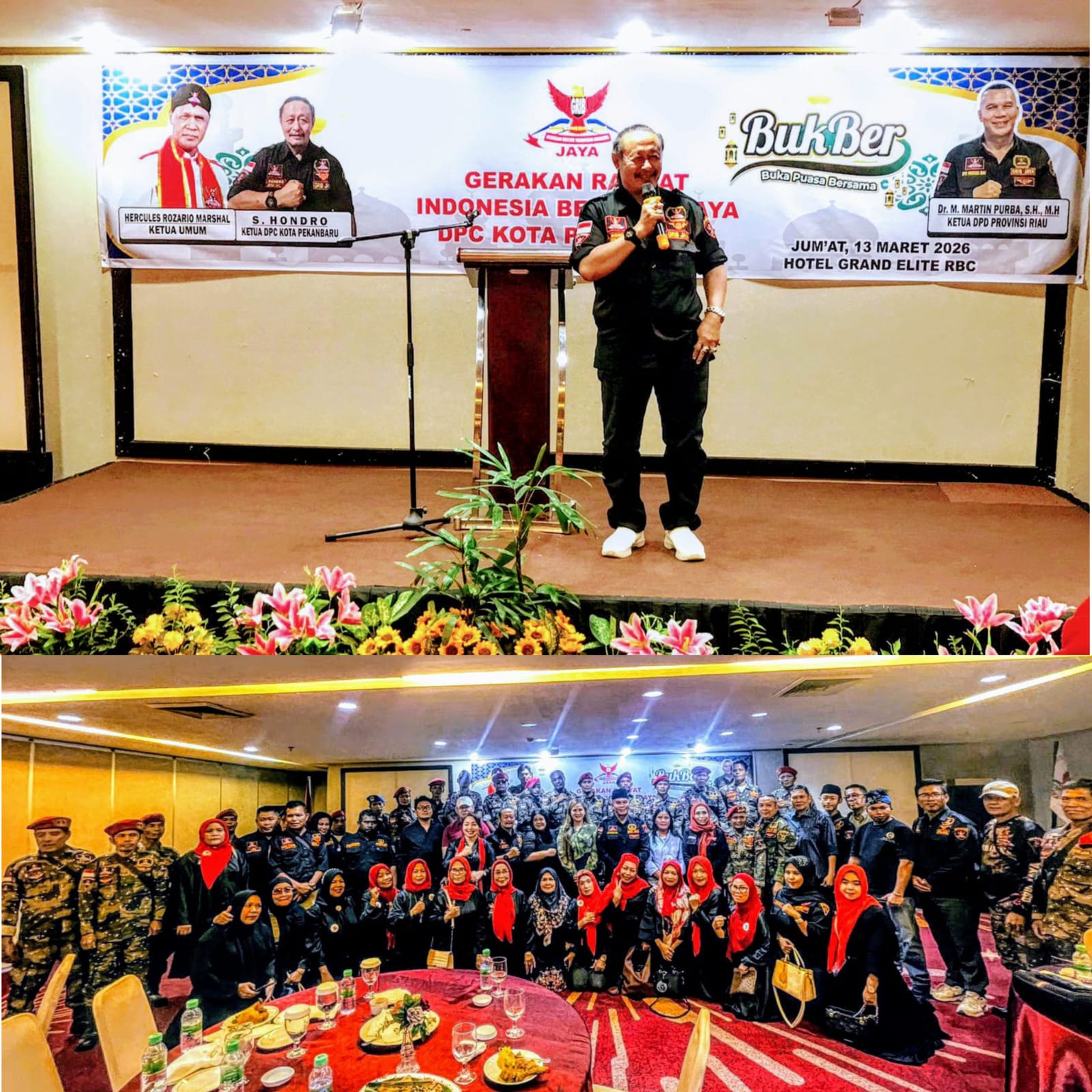 PEKANBARU — Mengawali masa jabatannya ketua Dewan Pimpinan Cabang ( DPC) GRIB JAYA Pekanbaru S Hondro taja buka bersama jajaran sekaligus silaturahmi sesama kader DPC GRIB JAYA. Buka bersama yang diselenggarakan di Hotel Rand Elit jalan Riau kota Pekanbaru Riau dihadiri ketua DPD Riau Dr M Martin Purba SH, MH, C,Me, sekretaris DPD ibu Imelda, ketua Satgasus bersama jajarannya, ketua Srikandi bersama jajarannya, 3 ketua DPC yaitu DPC Kampar, DPC Siak dan DPC Dumai.( Jumat 13/3/2026).